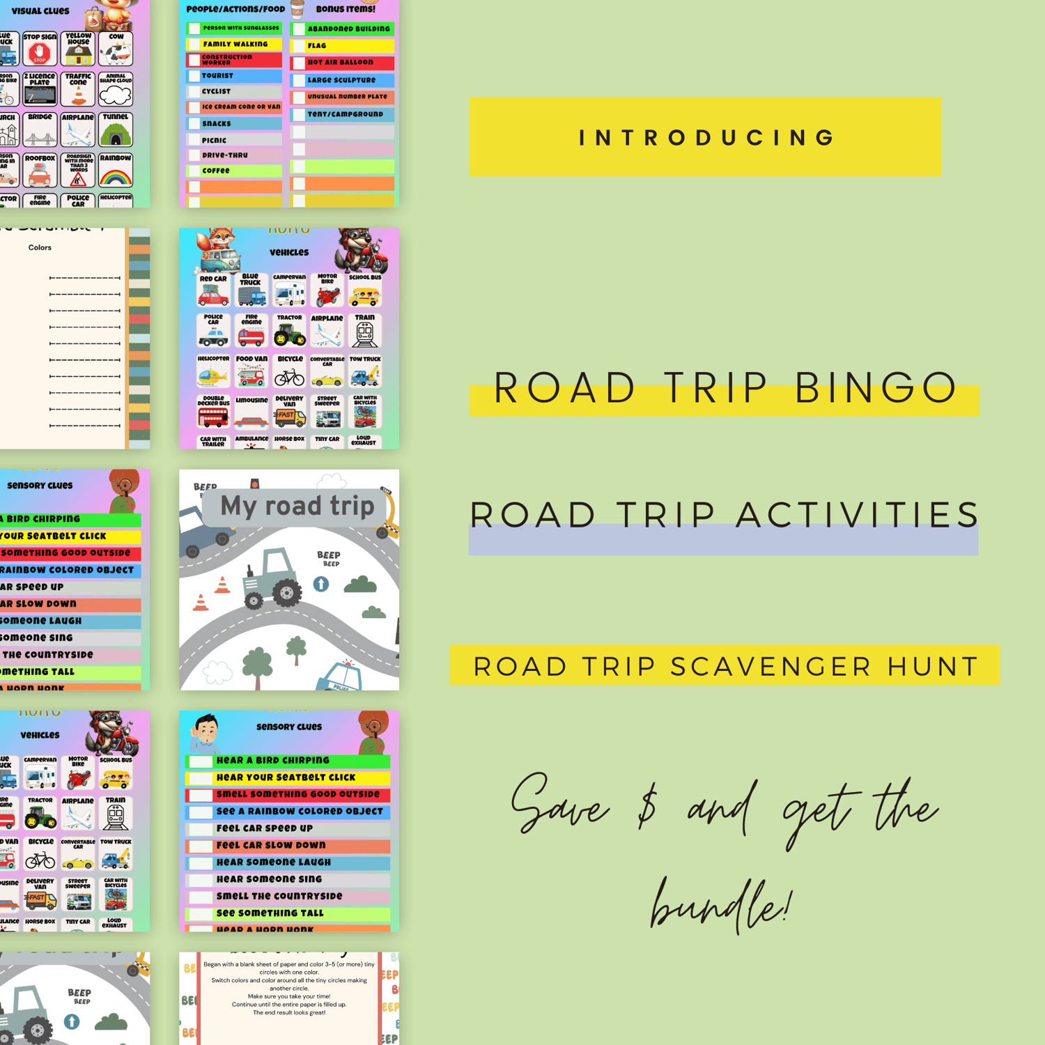π Road Trip Printable Bundle for Kids (Editable PLR Template)